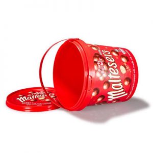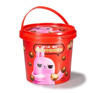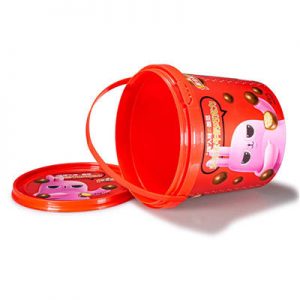 Labeled in the film chocolate biscuit plastic bucket